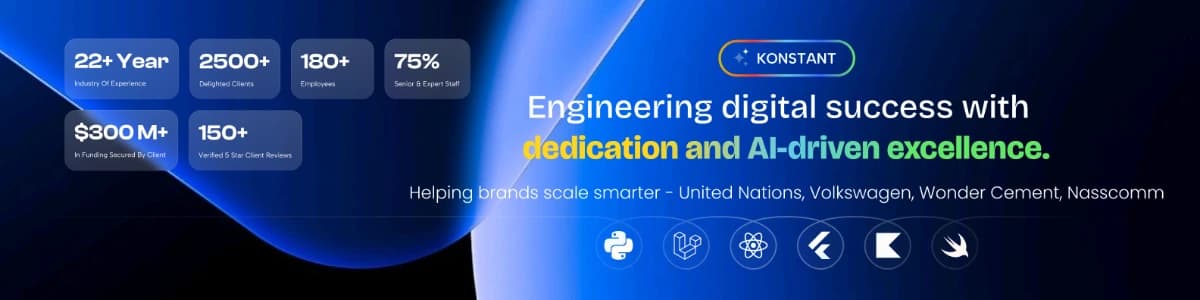 Konstant Infosolutions is a leading mobile app, web, and AI development company with 23+ years of experience delivering future-ready digital products for startups, SMBs, and global enterprises. Whether you’re building a product from scratch or scaling an existing one, we bring deep technical expertise, strong domain knowledge, and a reliable delivery approach trusted by 2,500+ clients worldwide. We specialize in end-to-end product engineering, covering: AI/ML & Generative AI, AI Chatbots, Computer Vision, Predictive Analytics Cloud Consulting & DevOps, Microservices, Kubernetes Blockchain & Web3, Smart Contracts, NFT solutions IoT & Wearables, Industrial IoT, Connected Devices AR/VR, Immersive Experiences & Simulations Custom Mobile & Web Development using Swift, Kotlin, Flutter, React Native, Ionic Web Development & Full-Stack Engineering using ReactJS, Angular, Node.js, Laravel, Python, PHP Database & Backend Engineering with MongoDB, PostgreSQL, MySQL, GraphQL, SQL Product UI/UX, Prototyping & Design Systems Why global businesses prefer working with us: 23+ years building scalable and secure digital solutions 180+ in-house experts (75% senior talent) 64% repeat business, demonstrating long-term trust PMP & Scrum-certified teams ensuring predictable delivery Flexible engagement models to fit every stage of growth What sets Konstant Infosolutions apart: Tailor-made digital solutions aligned to each client’s unique business goals Expertise across 15+ industries including fintech, healthcare, eCommerce, real estate, logistics, education, hospitality, and on-demand services Ability to work seamlessly across time zones with transparent communication Proven excellence in emerging technologies such as AI, IoT, AR/VR, Blockchain, Cloud, Web3, and more Dedicated post-launch support ensuring a smooth, long-term product experience If you're looking for a reliable technology partner to build, scale, or modernize your digital product, we’d love to help.