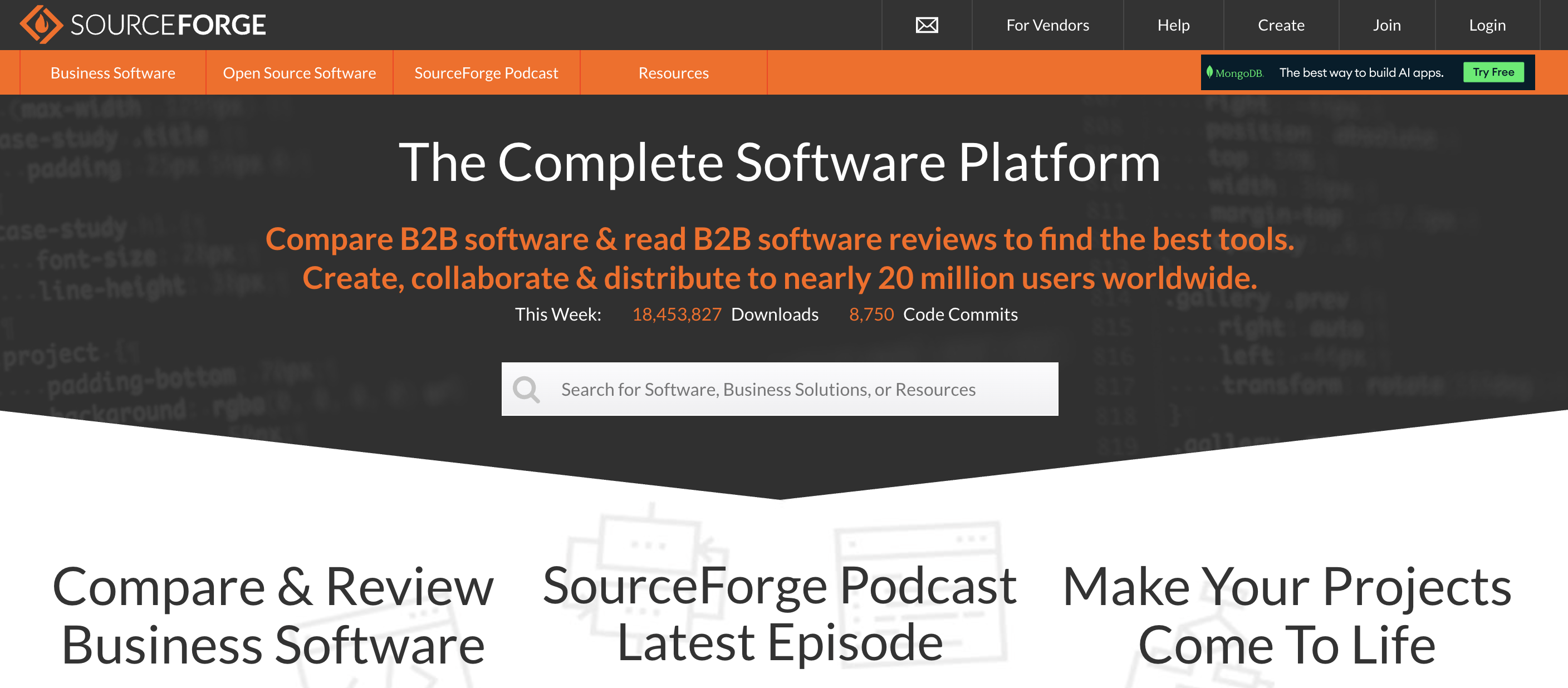 SourceForge is one of the oldest software discovery platforms on the internet and has been around since 1999. However, it has evolved from an open-source repository into a broader software comparison and review platform.